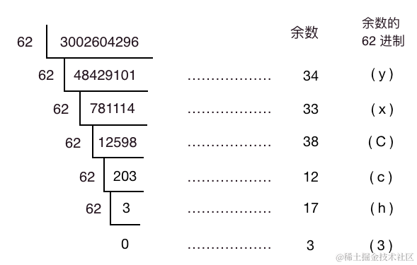 为什么是62进制?因为62进制可以用0-9,a-z,A-Z表示,确保url中不会有奇怪字符。