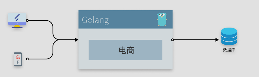 如下图,今天天气不错,我们开始创业(天气和创业有啥关系???),搞了一个电商网站,由于前期人手不足技术也不够,就一个服务和一个数据库就开始对外提供服务了